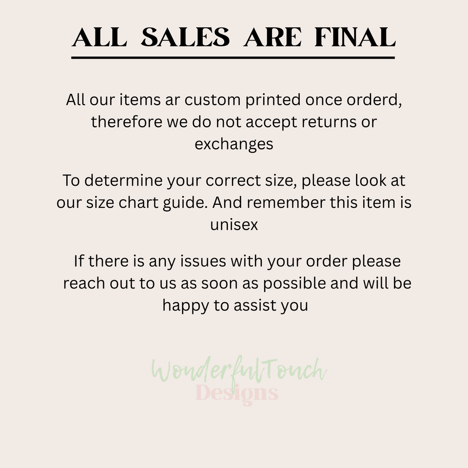 This is a custom sweatshirt and therefore we do not accept returns, exchange or cancellation, if there are any issue with this product, please let us know asap and we will be more than happy to help you.
